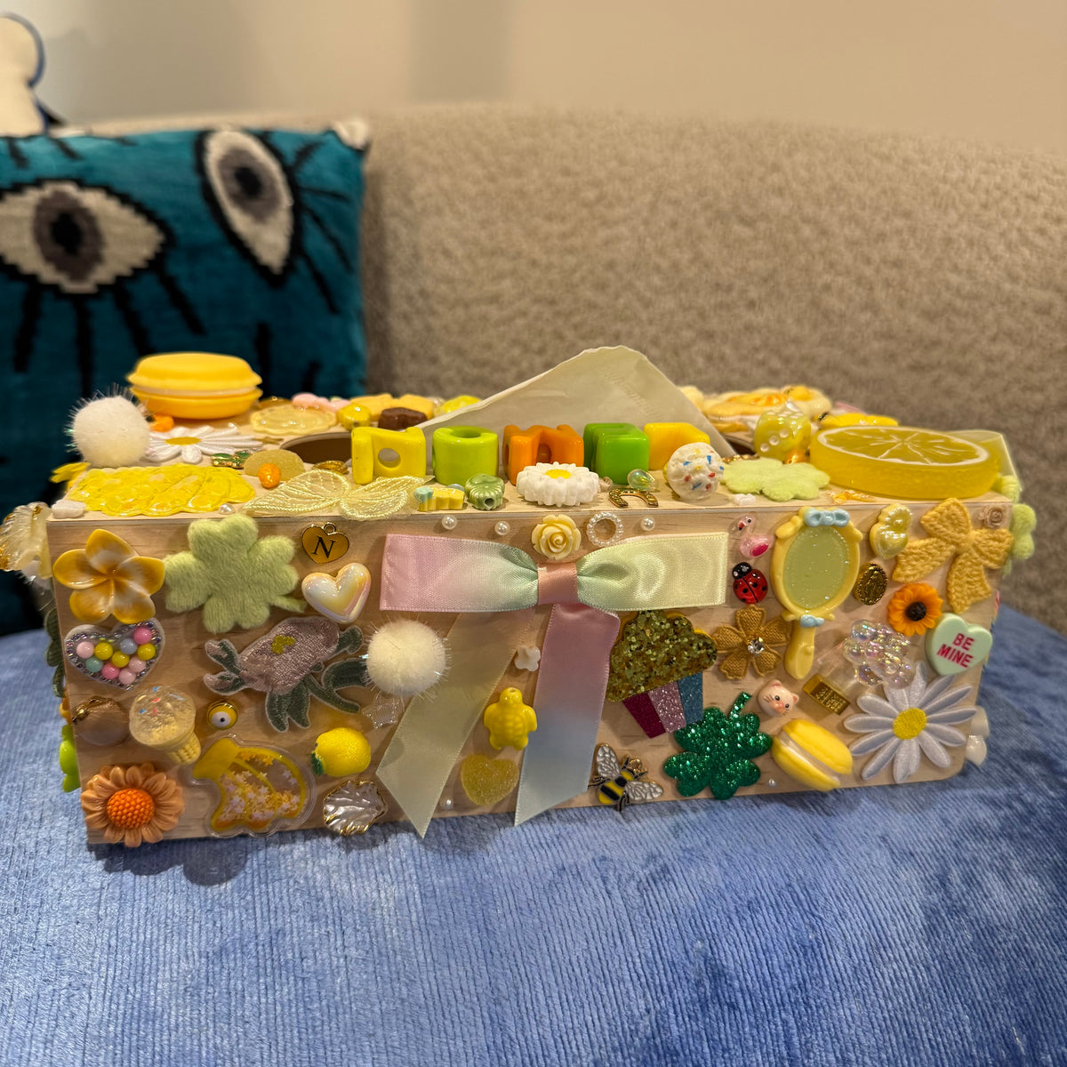 Boîte à mouchoirs en bois “Lemon”, décorée dans de délicates nuances de jaune pastel, entièrement réalisée à la main à...